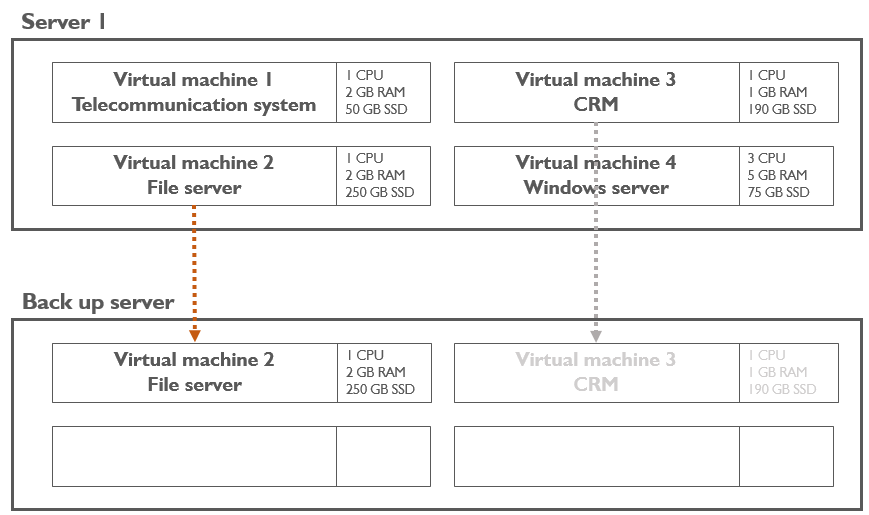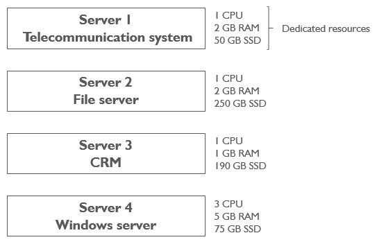 Si tous ces services tournent sur le même serveur, on peut alors rencontrer un problème similaire à celui rencontré sur un simple ordinateur personnel : si l’on démarre un programme demandant beaucoup de ressources, les autres programmes seront ralentis, voire tout se bloque. Une entreprise ne peut se permettre d’avoir ses différents services bloqués ou ralentis.